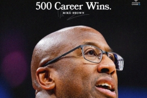 这是主教练迈克·布朗教练生涯的第500场胜利,球队官方晒图祝贺。