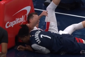 卡林顿空接扣篮带倒邓罗 邓罗防守犯规&杜伦T 活塞挑战&卡林顿也T