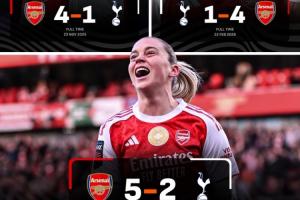 体育资讯03月29日讯 英女足第19轮北伦敦德比,阿森纳女足5-2轻取热刺女足。本赛季,阿森纳男女足在北伦敦德比中展现出统治级表现,双双取得大胜,成为德比战的绝对主角。